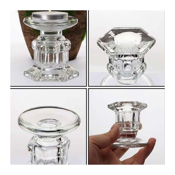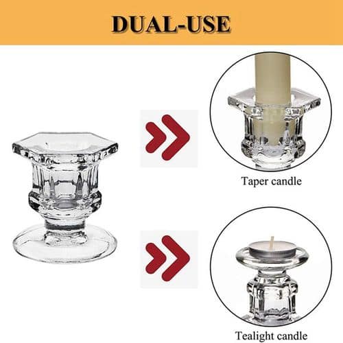 Proper Size: each of the clear wedding candlestick candle measures approx. 2 inches in base diameter, 2.5 inches in height, 1.9 inches in top diameter, and 0.9 inches candle hole in diameter, which is suitable for regular taper candles or flameless LED candles (candles NOT included); And ideal to decorate your room without taking too much space
